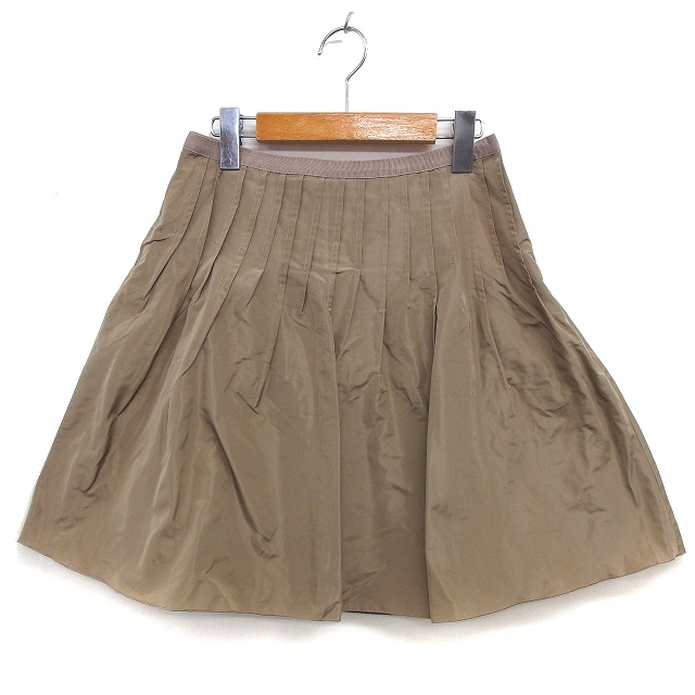 【中古】ランバンオンブルー LANVIN en Bleu フレア スカート ひざ丈 プリーツ サイドジップ 38 グレージュ /NT15