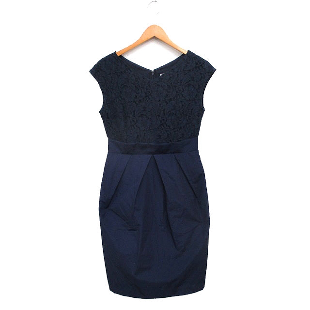 【中古】ティアラ Tiara ワンピース ノースリーブ 膝丈 総レース 3 ネイビー 紺 /KT15 レディース