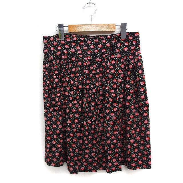 【中古】アニエスベー agnes b. 花柄 ラップスカート ミニ ギャザー 2 ブラック 黒 /FT37 レディース