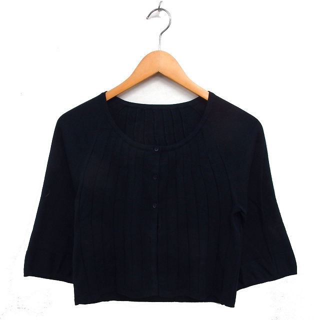 【中古】ローラアシュレイ LAURA ASHLEY ラグランスリーブ カーディガン ニット ショート リブ ハイゲージ 七分袖