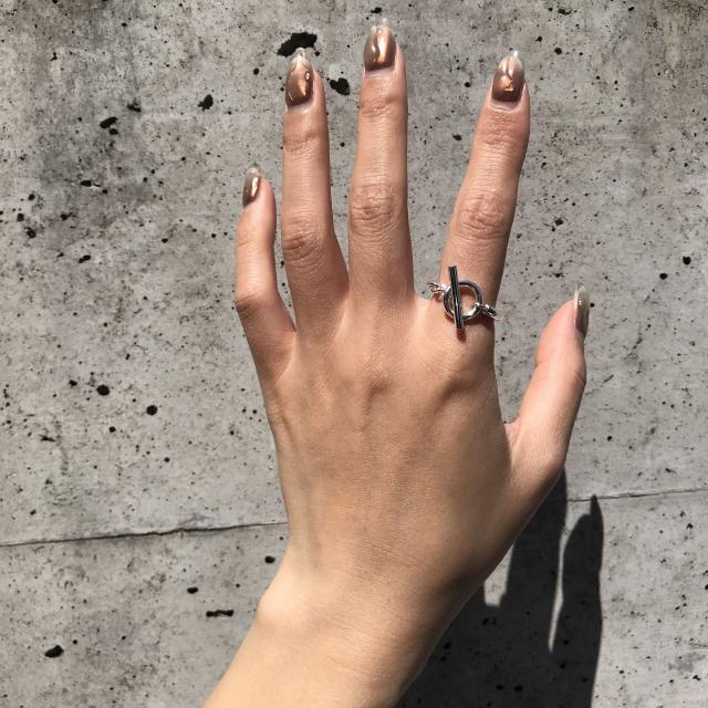 チェーンブレスレットのように指に巻き付けるタイプです。