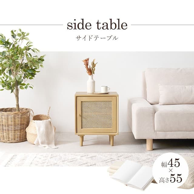ラタンサイドテーブル 韓国インテリア スクエア ラタン編み 収納棚 ベッドサイドテーブル 45cm ディスプレイ 北欧インテリア