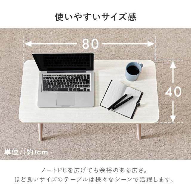 ソファに座ってのパソコン作業や読書にピッタリな高さ。作業スペースは確保しつつコンパクトに折りたためて移動や収納にも便利。