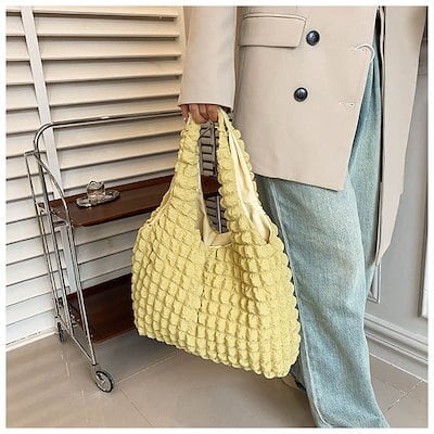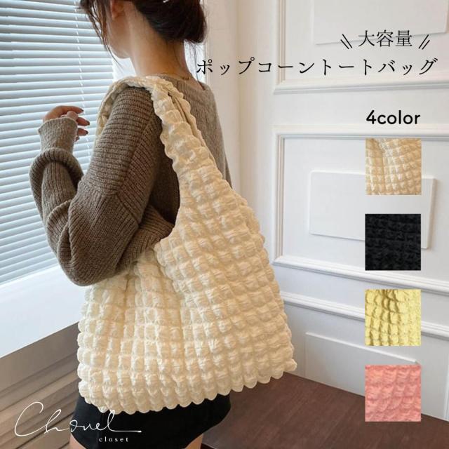 送料無料 ポップコーントートバッグ ホワイト ブラック イエロー ピンク バック BAG かばん カバン 鞄 大きい トート 肩掛け 大容量 おしゃれ 韓国バッグトートバック トート 韓国 | レディース 大人 夏 ショルダーバッグ トレンド SSS