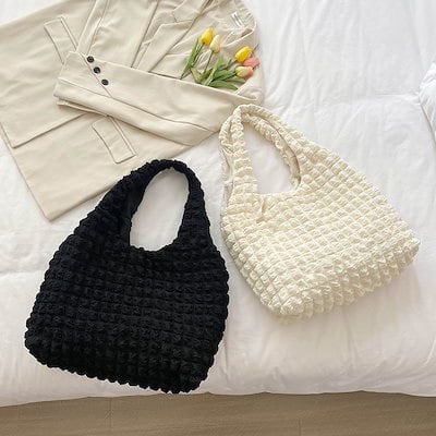 モコモコとしたテクスチャーが可愛い、ポップコーン トートバッグ。軽量で容量もあるので通勤、通学、エコバッグにもママにはマザーズバッグとしてもおすすめです。