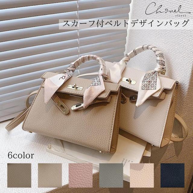 【6色】送料無料 2wayスカーフ付ベルトデザインミニバッグ ショルダーバック バッグ BAG かばん カバン 鞄 ショルダー 肩掛け 斜めがけ 斜め掛け おしゃれ ミニバッグ 結婚式 スカーフ 韓国 レディース 大人 マチあり グレージュ ブラック ベルトデザイン 韓国バッグ SSS