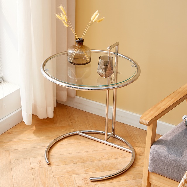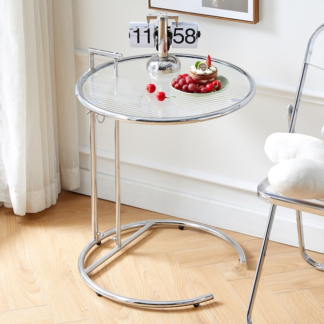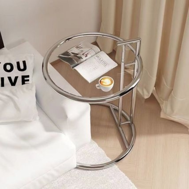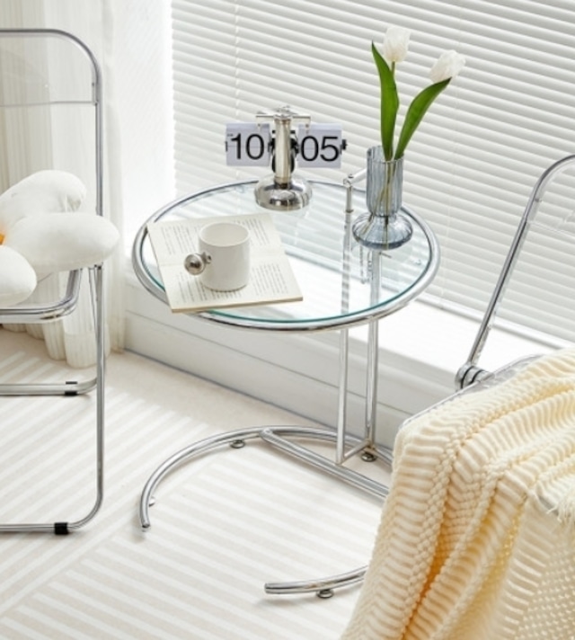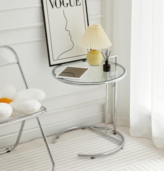 サイドテーブル ラウンド クリア ガラス ガラステーブル カフェテーブル 丸 円形 韓国クリア家具 韓国インテリア 北欧インテリア ガラステーブル 高さ調整 リフトアップ スチール ラウンドテーブル ガラステーブル 輸入家具 SSS