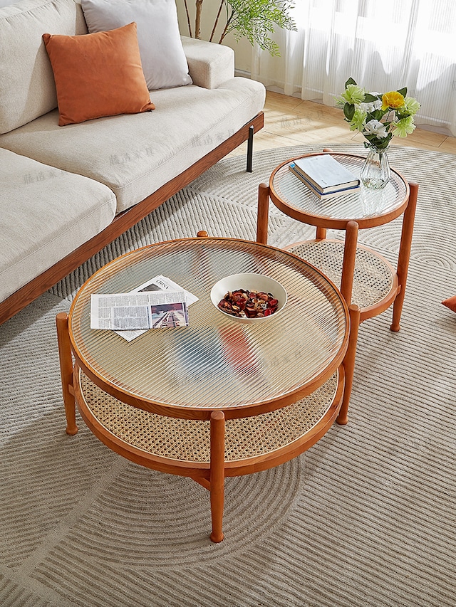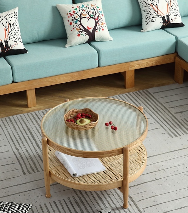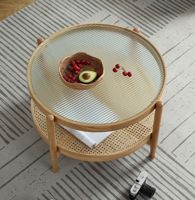ラタン テーブル ローテーブル リビングテーブル コーヒーテーブル センターテーブル 机 円座卓 木製 インテリア おしゃれ ナチュラル 北欧 カフェ モダン 韓国インテリア ガラス