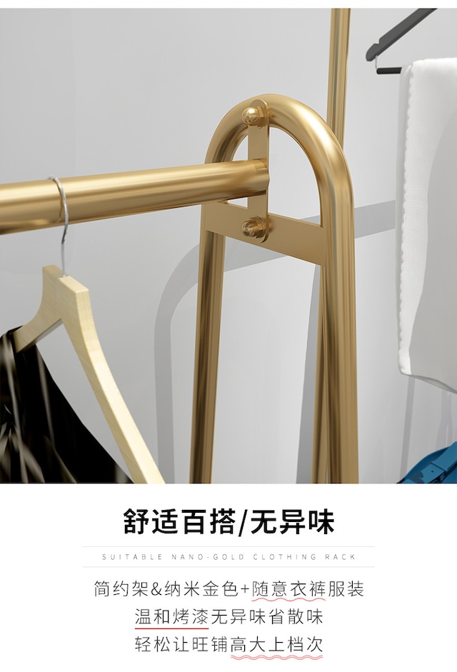 2colors/メタルハンガーラック メタルラック 高さ150cm ゴールド ブラック 黒 シングルラック 店舗什器 金色 アイアン 頑丈 衣類