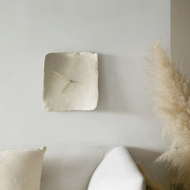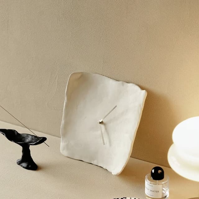 時間の過ぎる音も、お部屋の美しさを損なわない。そんな想いを込めて生まれたこの掛け時計は、あなたの空間に静かに寄り添います。毎日の生活に彩りを添えるホワイトクレイスクエアニュアンス ウォッチを、どうぞお楽しみください。