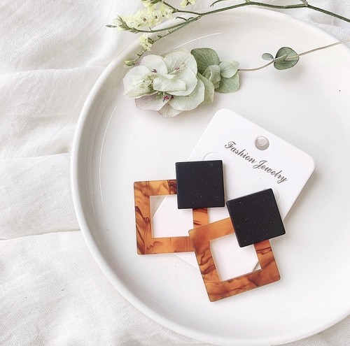 べっ甲柄スクエアピアス べっ甲ピアス スクエアピアス 韓国アクセサリー プチプラ プチプラピアス