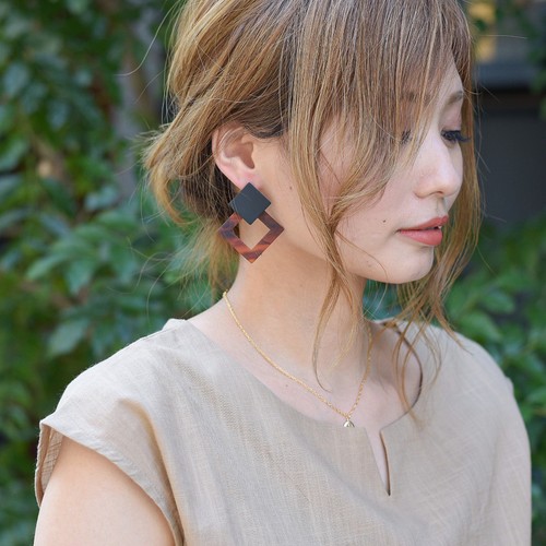 べっ甲柄のスクエアピアスです