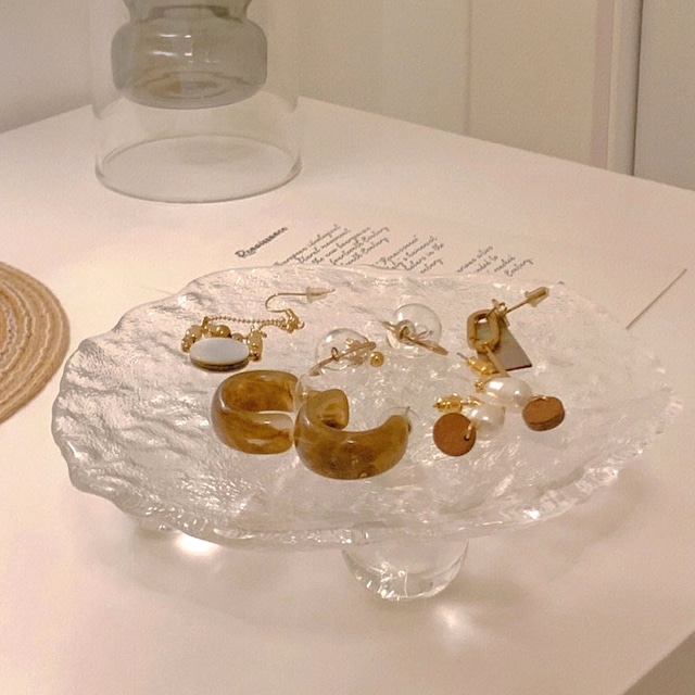 ガラスアクセサリープレート ディスプレイ 撮影小物 韓国インテリア 脚付き ガラスステージ
