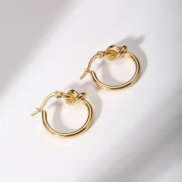 ステンレスノット フープ ピアス ゴールド ぶら下がり ステンレス アクセサリー 誕生日 記念日 プレゼント ギフト ※ 小さい フック 金属アレルギー対応 揺れる ではありません