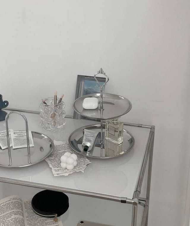 ステンレス 二段 アクセサリー トレイ ディスプレイ メタル トレー ミッドセンチュリーモダン 韓国 北欧 インテリア 韓国雑貨