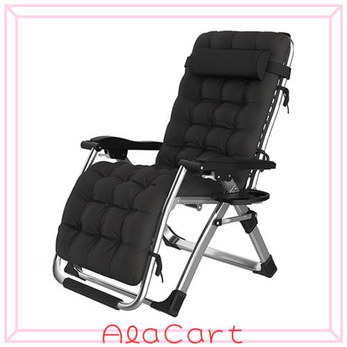 【リクライニングチェアサイズ】拡大サイズ:170cm×65cm×40cm/ 収納サイズ:95cm×65cm×15cm 本体重量: 約10kg 耐荷重:約160kg。 カップホルダー付 枕付き。