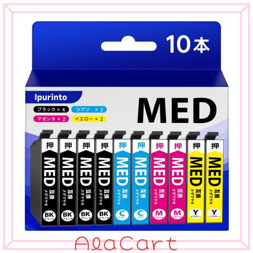 【セット内容】 この 目玉焼き 互換 インク 10本パックには MED-BK ブラック 4本 / MED-C シアン 2本 / MED-M マゼンタ 2本 / MED-Y イエロー 2本 があります。
