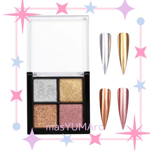 【ミラーパウダー】綺麗なネイルパウダーパレットが登場!カラーバリエーションが豊富、光に反射して、きらきら光ります。季節問わずお使いいただきます。