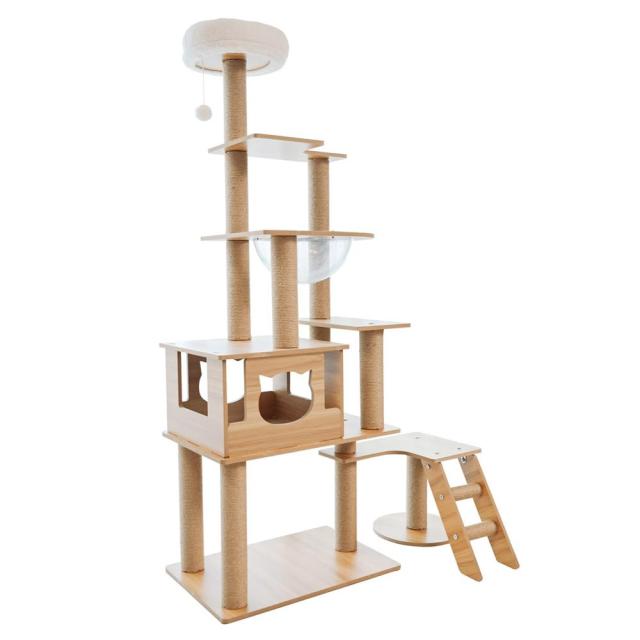・シンプルでインテリアにマッチするデザイン、インテリアにも溶け込みおしゃれな印象に ・木製なので猫の毛も付きにくくお手入れもラクラク、木の優しいぬくもりでネコちゃんも安心 ・木登り感覚で運動不足予防に ・スケルトンランドベット付きなので、下から覗き込めば可愛い肉球が見えます ・快適に過ごせるワイドタイプ、見た目以上にスリムでコンパクト