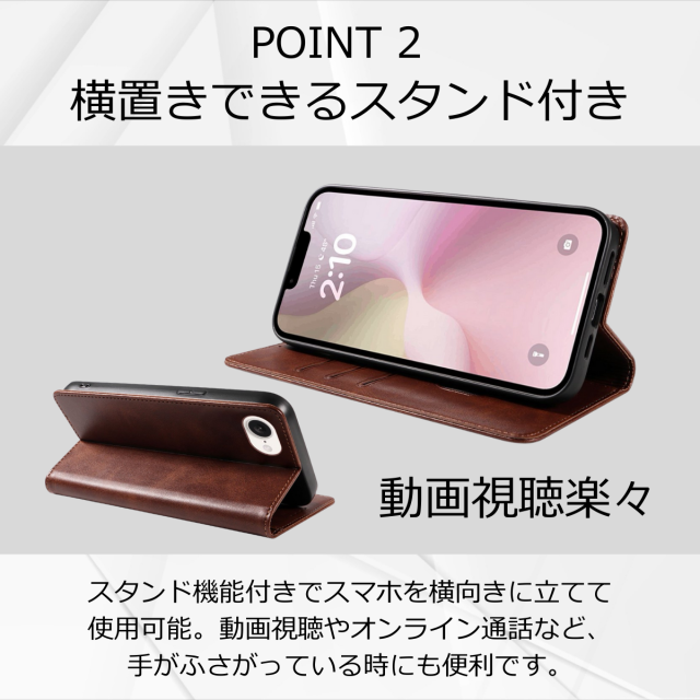 マグネット開閉で使いやすく、横置きスタンドとしても活躍します。