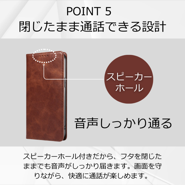 スピーカーホールのおかげでケースを開かずにそのまま通話が可能。手がふさがっているときにも役立ちます。