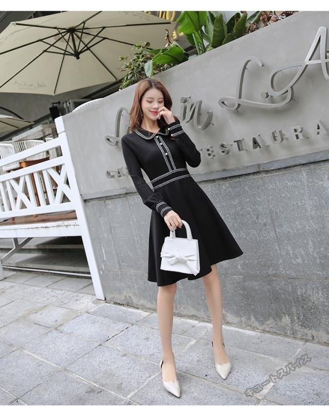 ワンピース 膝丈 ワンピ レディース キレイめ 長袖 ワンピース フォーマル ドレス 黒ワンピース 30代40代 入学式 スーツワンピース パーティドレス