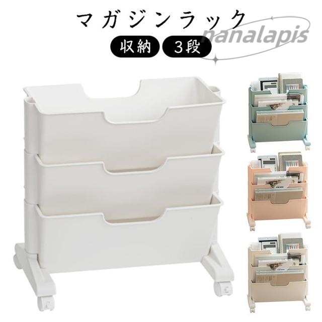 | 北欧デザインのおしゃれでスリムなマガジンラック。3段、小型タイプ、キャスター付き キャスター付きのワゴンで移動もスムーズな便利グッズです。 雑誌やテキスト、教科書、絵本の収納以外にも A4やA3サイズの用紙やファイルを収納することができます。 オフィスやリビング、子供部屋のインテリアに馴染むデザインで、マガジンラックとしてデスクワゴンとして、サイドワゴンとして活躍してくれます。 | |