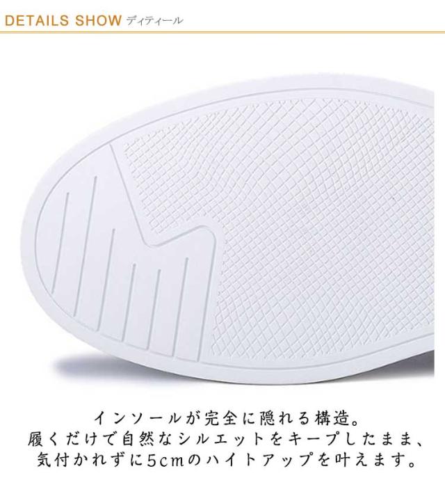 | インヒール内蔵で外見からは身長アップシューズとは分からない自然なデザイン インソールが完全に隠れる構造。履くだけで自然なシルエットをキープしたまま、気付かれずに5cmのハイトアップを叶えます。 屈曲性のある柔らかなソールが心地よく、足に馴染んで、足に負担をあまりかけず。自然な 身長アップ & 脚で身長を高く見せてくれる、外見からは気づかれず身長を伸ばす。 外からは通常のカジュアルシューズと変わらないのも魅力的!自然なデザインで外見からはシークレットシューズとは気づかれません。 軽量素材を使用して作られており、履いても足に負担を感じさせません。歩行や運動の際にもスムーズに動け、快適な履き心地を提供します。 通勤・通学に最適な高耐久厚底ソールが、安定性と快適さを両立。日常の歩行をしっかりサポートするデザインで、長時間の移動も疲れにくく。 | |
