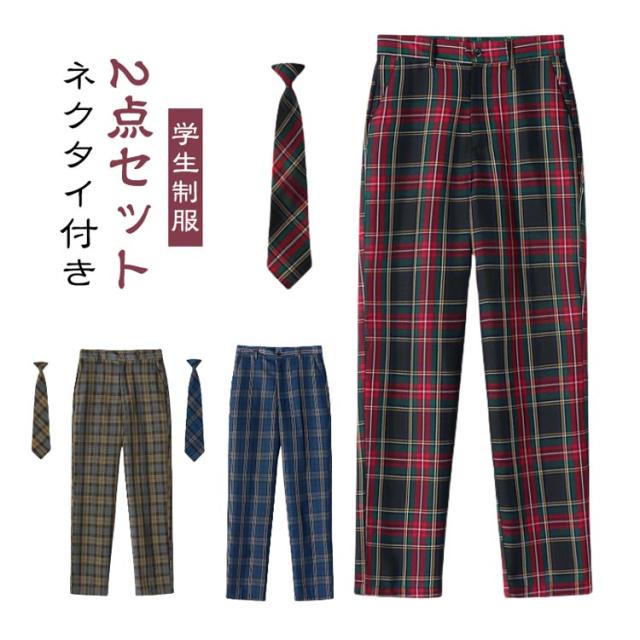 スラックス 男の子 小学生 ロングパンツ 学生制服 パンツ スクールパンツ 男子 チェック柄 学生制服 高校生 中学生 カジュアル 学生服 ズボン 2点セット パンツ ネクタイ付き メンズ 制服 学生 キッズ 子供服 子ども服 入学 卒業 大きいサイズ