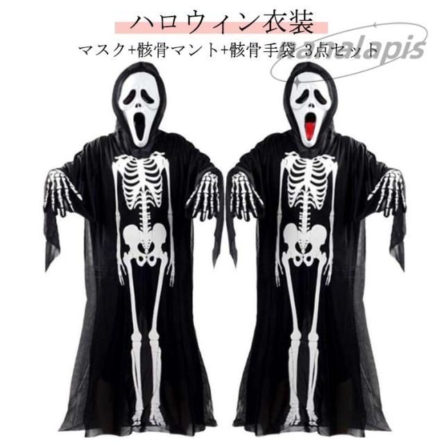 | マスク+骸骨マント+骸骨手袋 3点セット ハロウィン衣装 大人も子供も簡単に仮装! | |
