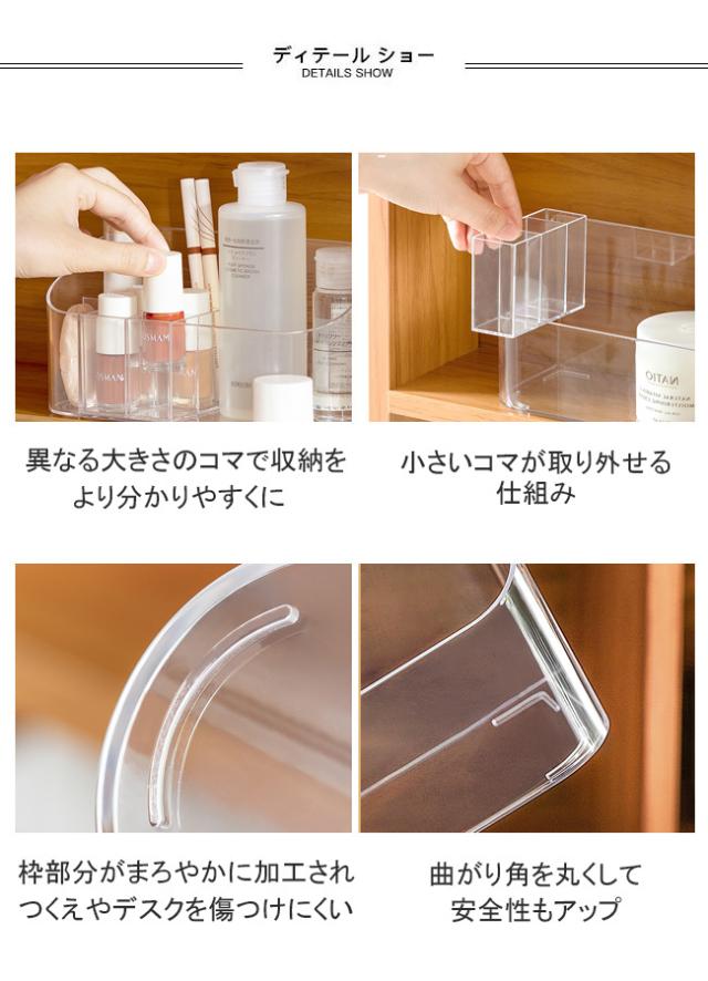 収納ケース 小物収納 コスメ収納 クリア ケース コスメボックス 区切り 収納ボックス 化粧品収納 コスメケース 透明