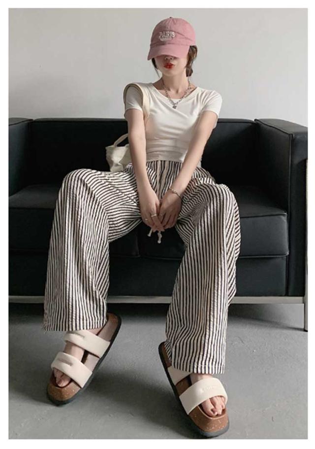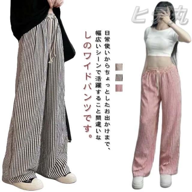 ボトムス ワイド レディース 春 夏 ワイドパンツ ストライプ ワイドパンツ ストライプ 涼しい パンツ パンツ スラックス ひんやり ストライプ柄 美シルエット ハイウエスト 落ち感 カジュアル シンプル モード