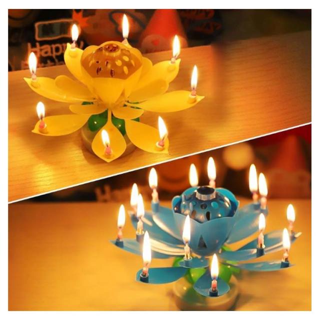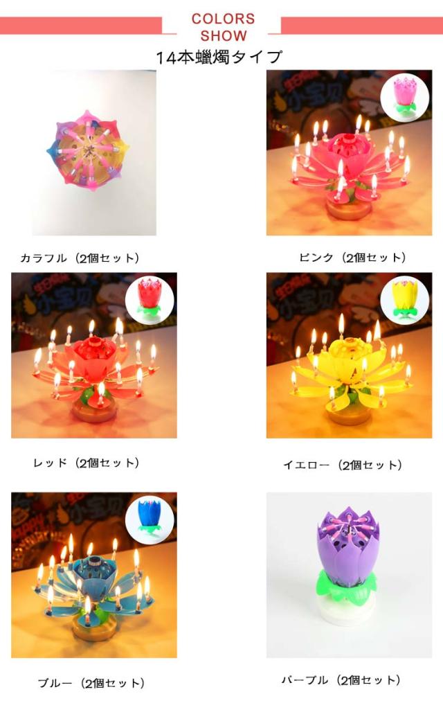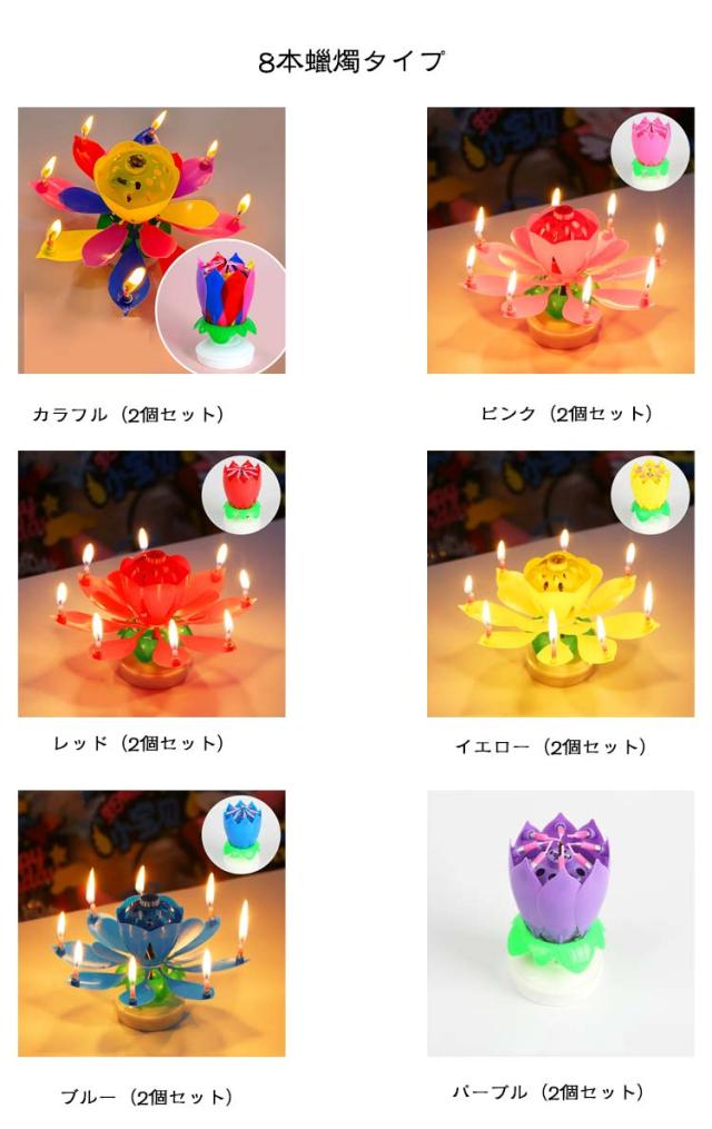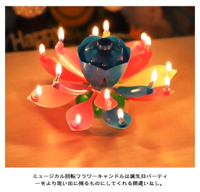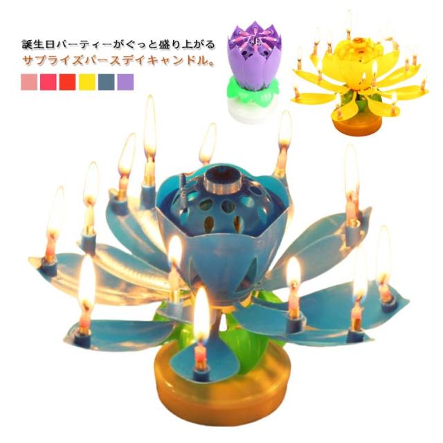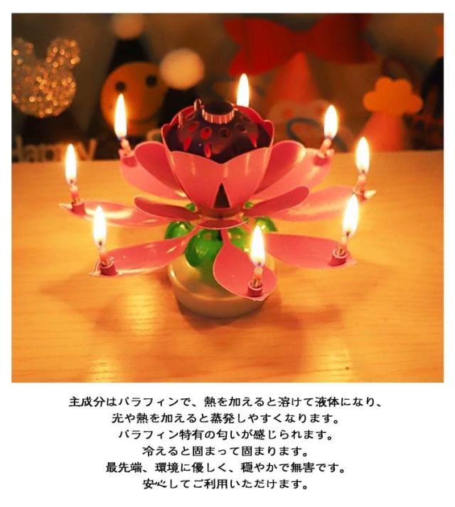 お誕生日 2個セット サプライズキャンドル おもちゃ くるくる回る バースデイキャンドル パーティー 蓮の花 花弁がくるくる回る メロディ 音楽付き 子供 バースデイキャンドル プレゼント お祝い