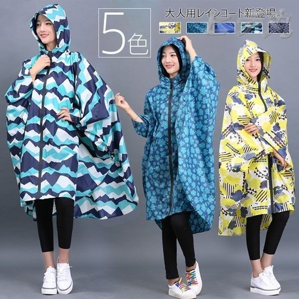 レインポンチョ レインコート 大人 レディース メンズ 男女兼用 前開き ファスナー フード付き 花柄 撥水 通勤 通学 自転車 カッパ 雨 雨具 防水