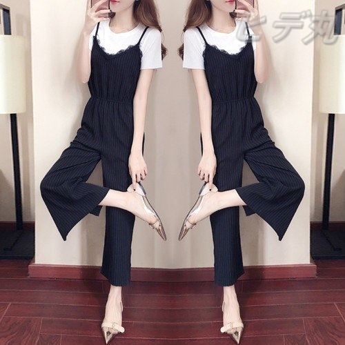 サロペット 20代 30代 40代 50代 コーデ オールインワン レディース ファッション 女性 夏服 秋 春 サロペットパンツ ストライプ Vネック