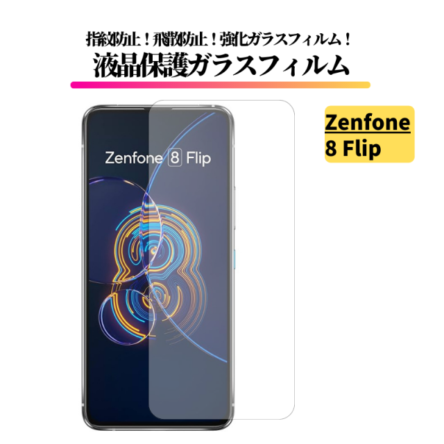 ZenFone 8 Flip ガラスフィルム 強化ガラス 保護フィルム 全面保護 光沢 高透過 硬度9H 飛散防止 指紋防止 ASUS ゼンフォン ZenFone 8Flip 6.67インチ