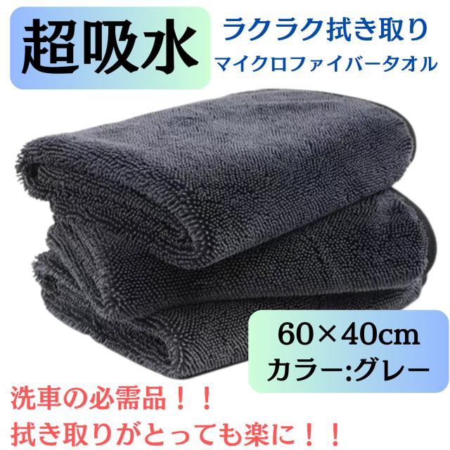 【超吸水】 洗車用マイクロファイバータオル 60×40cm 大判 拭き取り 傷防止 拭き筋ゼロ プロ用 洗車グッズ タオル マイクロファイバータオル 吸水タオル 掃除
