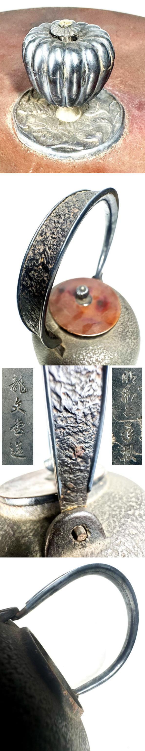 | 商 品 名 | 龍文堂 昭和二年秋造 弦裏純銀張り 純銀摘蓋鉄瓶 共箱 |