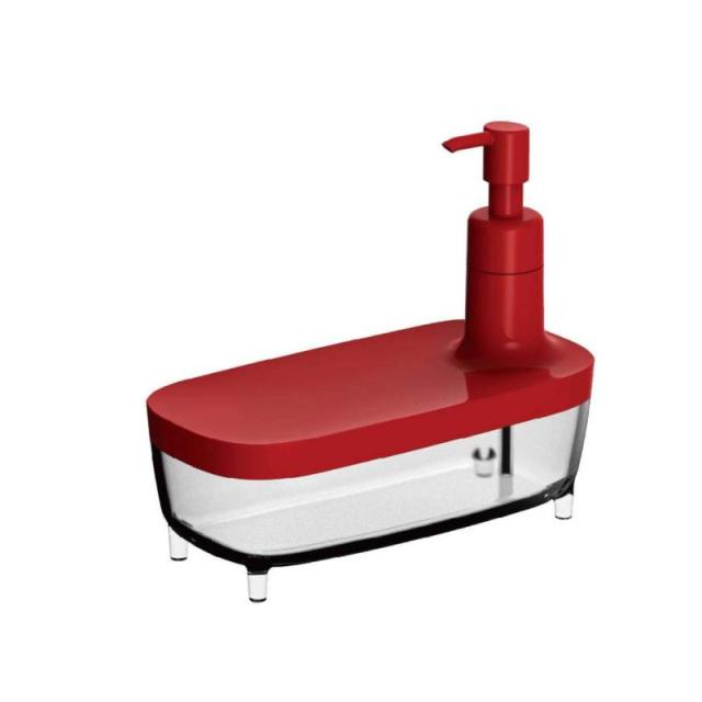 オーエ ディスペンサー 赤 約縦14.3×横16.6×奥行8cm スマートホーム II ソープディスペンサー キッチン 食器用洗剤 詰め替え スポンジトレー スポンジホルダー 日本製