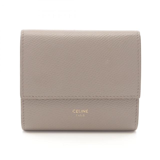 セリーヌ CELINE スモール トリフォールドウォレット 三つ折り財布 財布 レザー レディース ベージュ系 【中古】