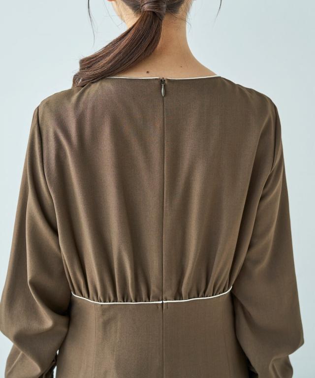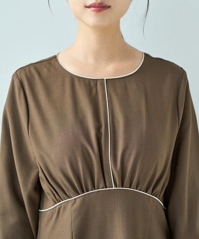 【オケージョン・洗える】配色 サテンパイピング ワンピース / イージーケア 【mil (ミル)】