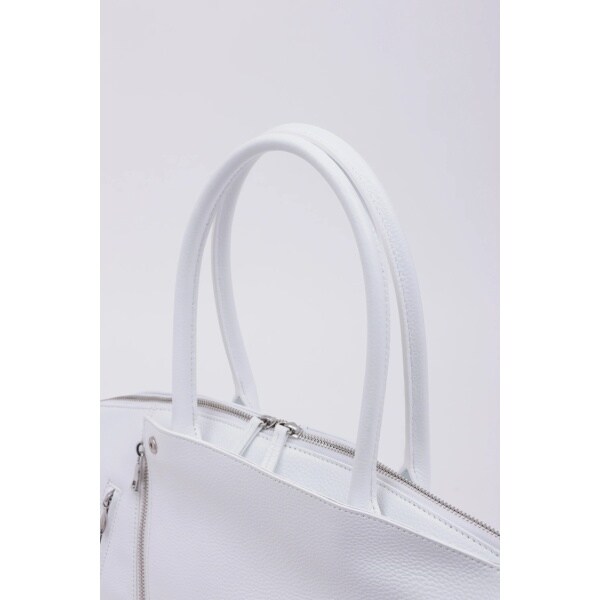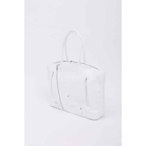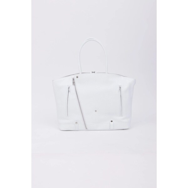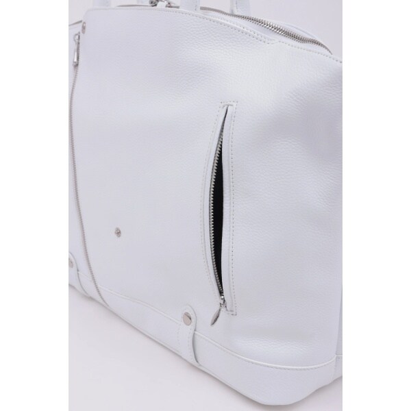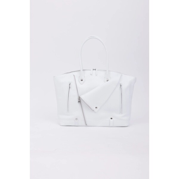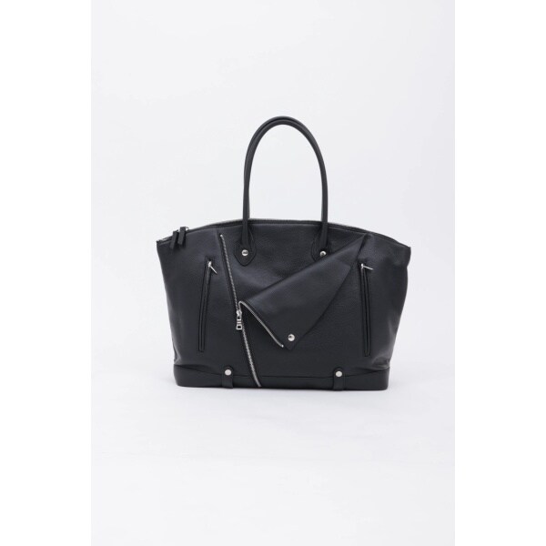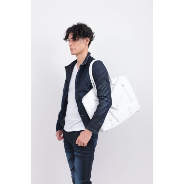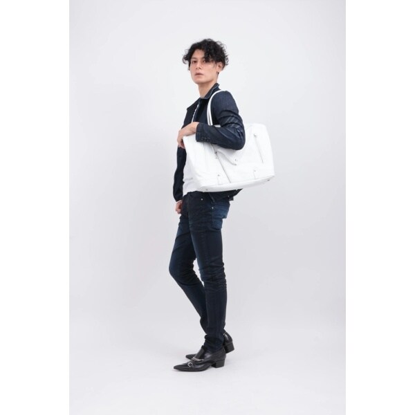 ダブルライダースジャケットのディテールを落とし込んだ、エッジィな佇まいのボストン調トートバッグ。