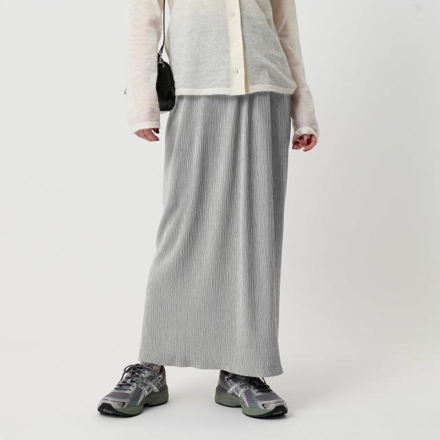 ショートブーツやスニーカーなど足元のお洒落も幅広く楽しめる、デイリーコーデの主役級スカートです。