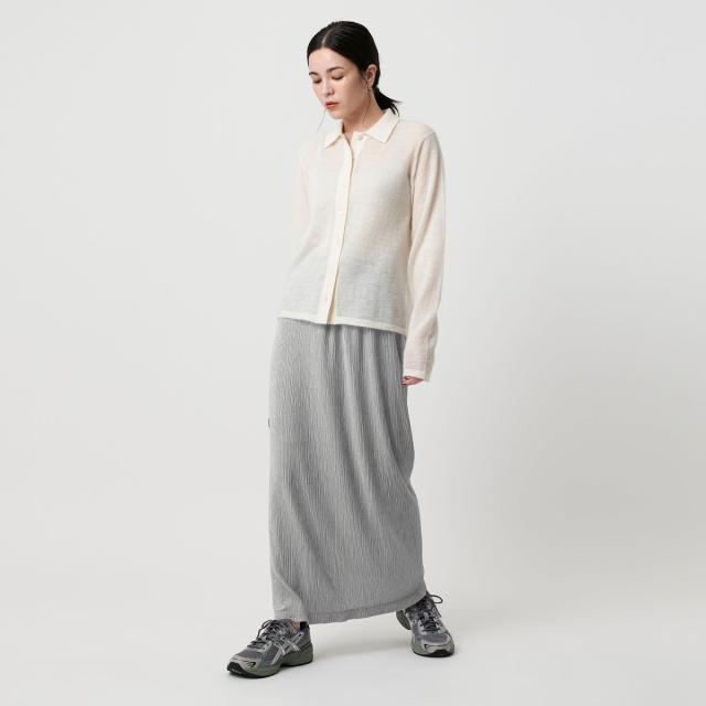 凹凸のある繊細なプリーツに、微光沢の質感が目を引くデザイン。