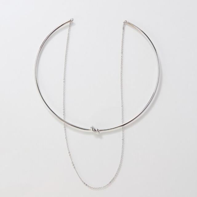 ノットモチーフのチョーカーと繊細なチェーンネックレスをレイヤードしたようなデザイン。