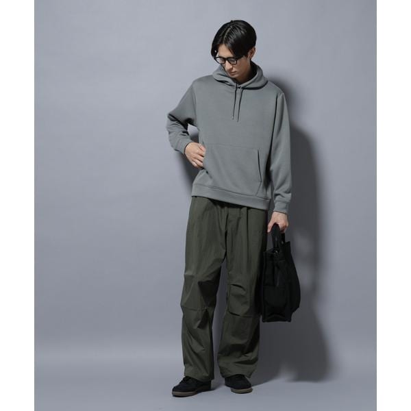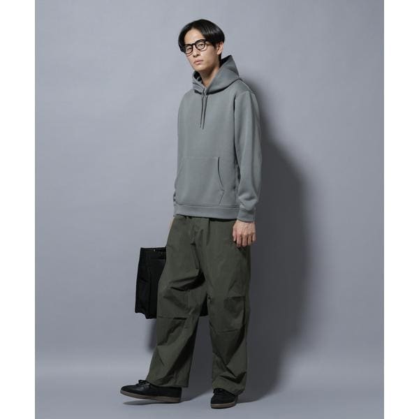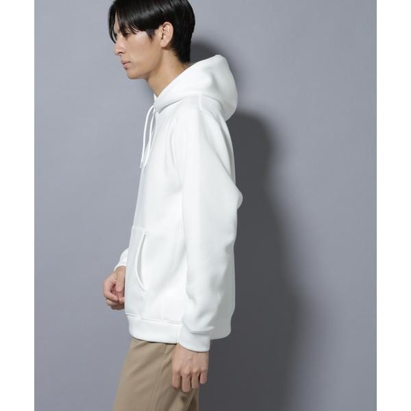 程よいフィット感にキレイめな見た目が特徴的なフーディーパーカー。裏毛と異なりジャケットのインナーやスラックスにもマッチするきれいめなアイテムです。