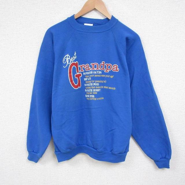 古着 ジャージーズ 長袖 スウェット メンズ 80年代 80s DAD ラグラン クルーネック USA製 青 ブルー Lサイズ 中古 スエット ト 中古 古着