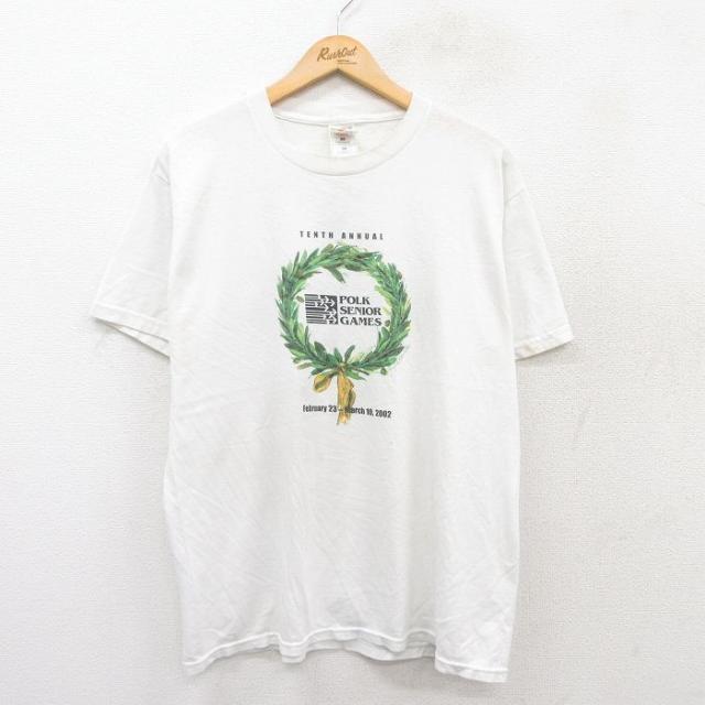 古着 半袖 ビンテージ Tシャツ メンズ 00年代 00s バレーボール 企業広告 コットン クルーネック 白 ホワイト Lサイズ 中古 中古 古着