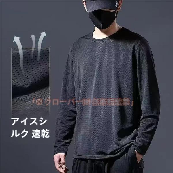 メッシュtシャツ ロングtシャツ メンズ 長袖 tシャツ 夏 涼しい クローバー株式会社 ロンT ラウンドネック 冷感 トップス 速乾 通気 薄手 大きサイズ M?5XL