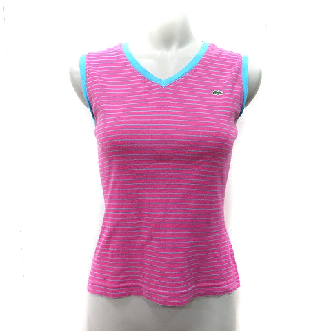 【中古】ラコステ LACOSTE タンクトップ カットソー ボーダー ワッペン 40 L ピンク 水色 /YI レディース